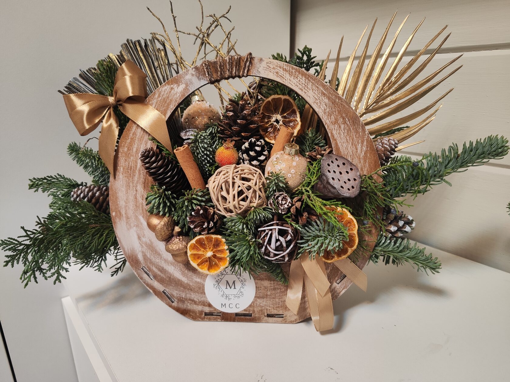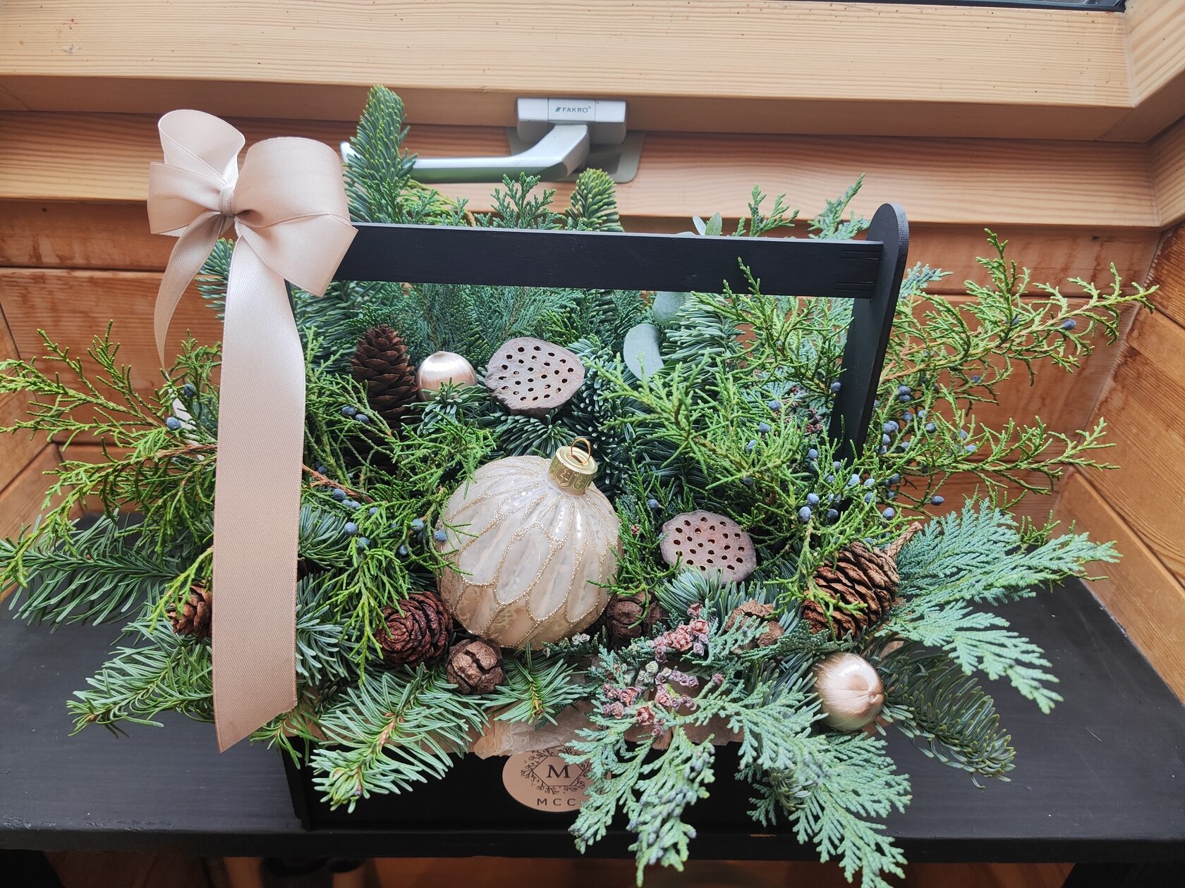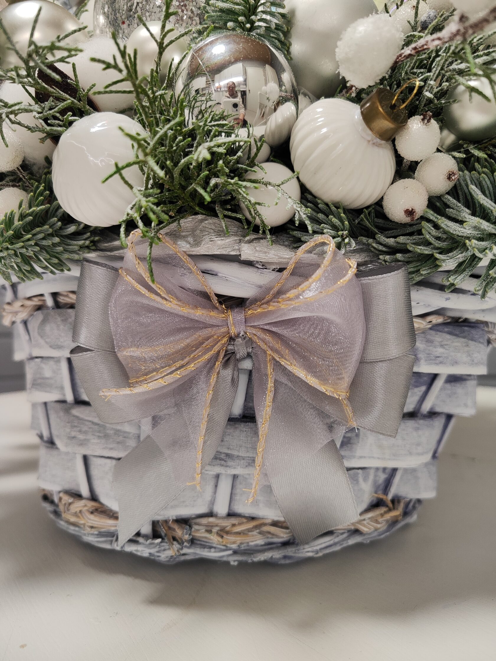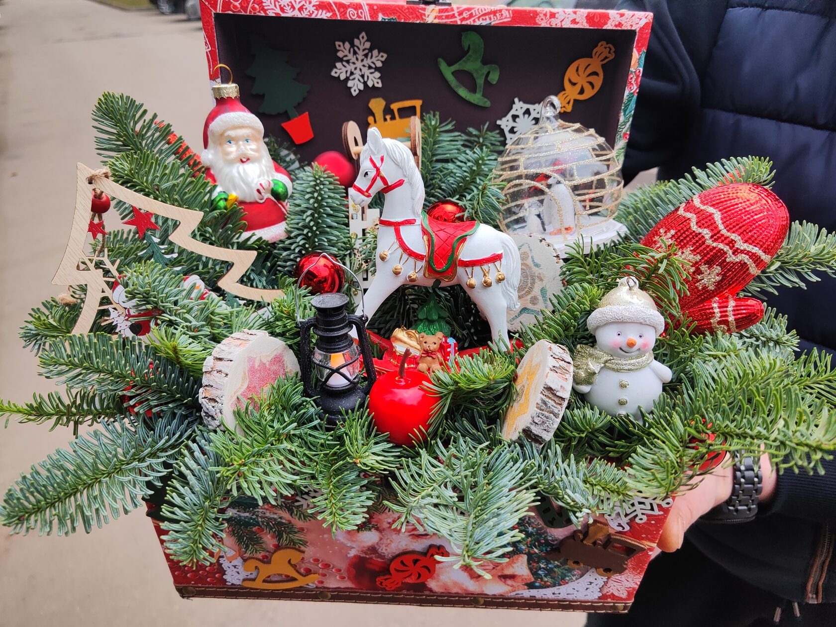 Композиция из веток сосны в деревянном ящике 60*40,высота 40см