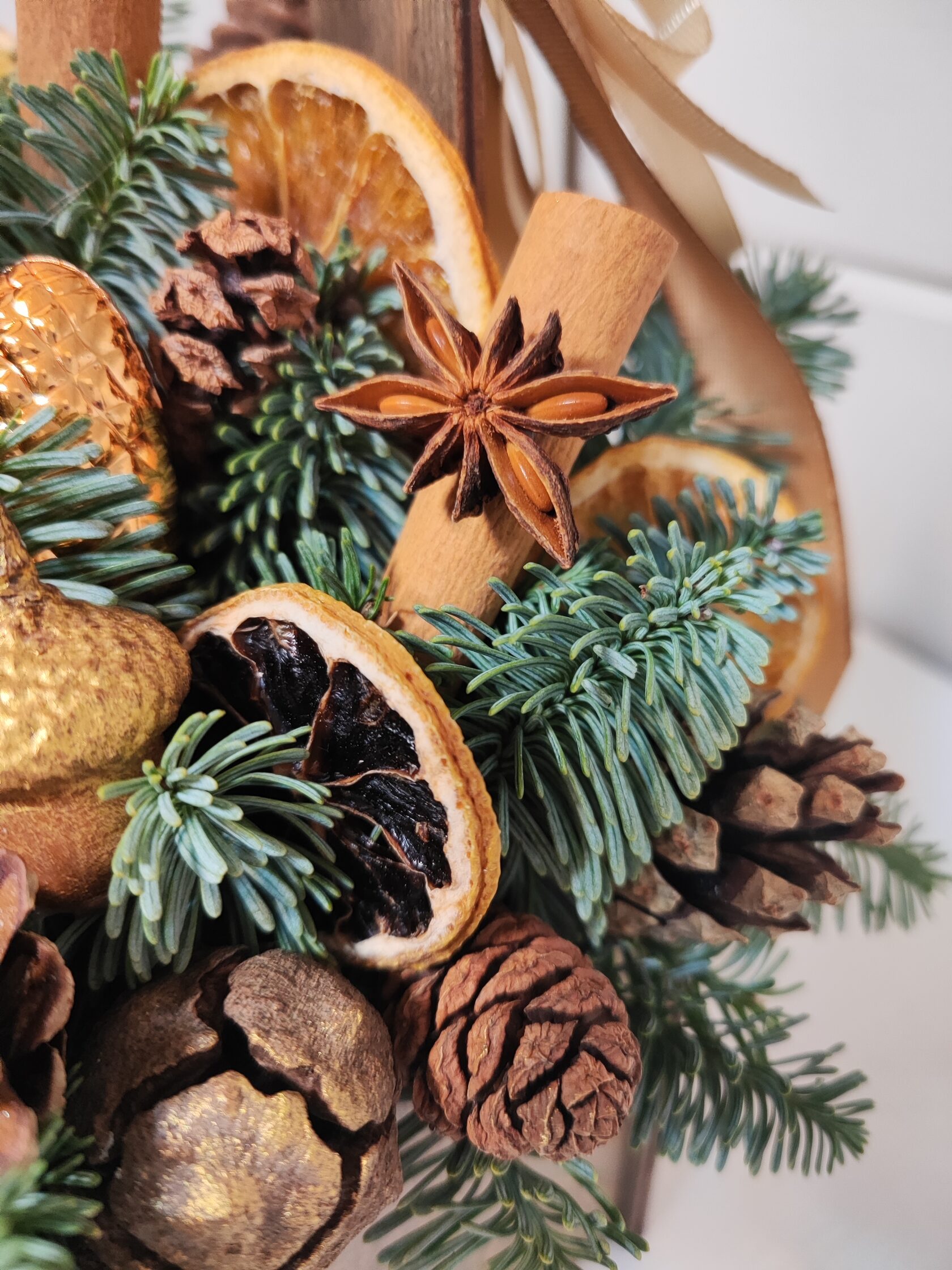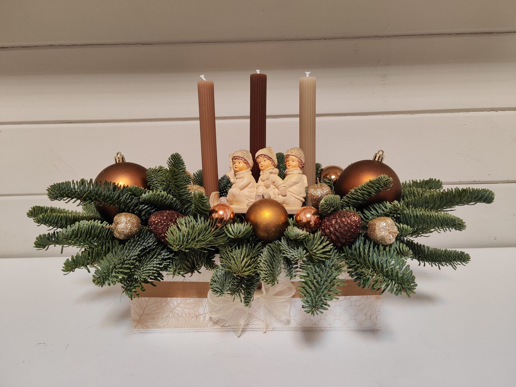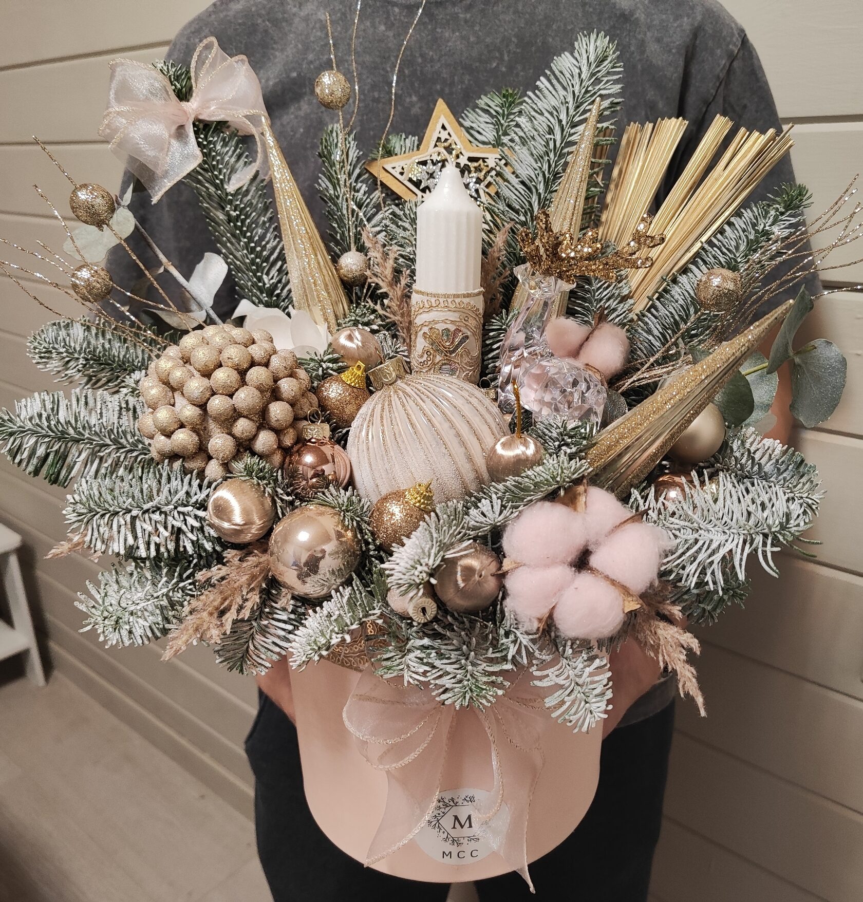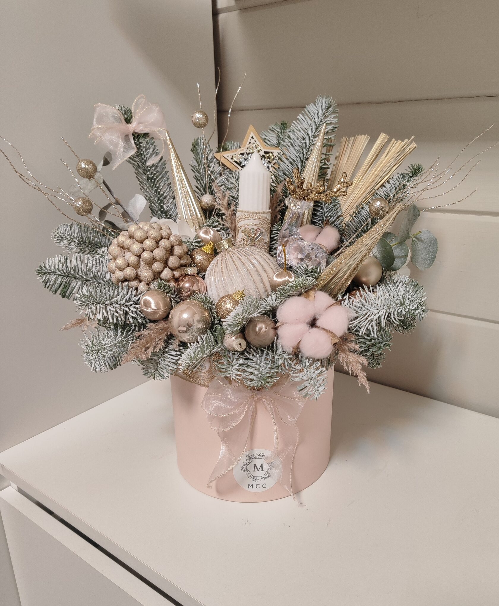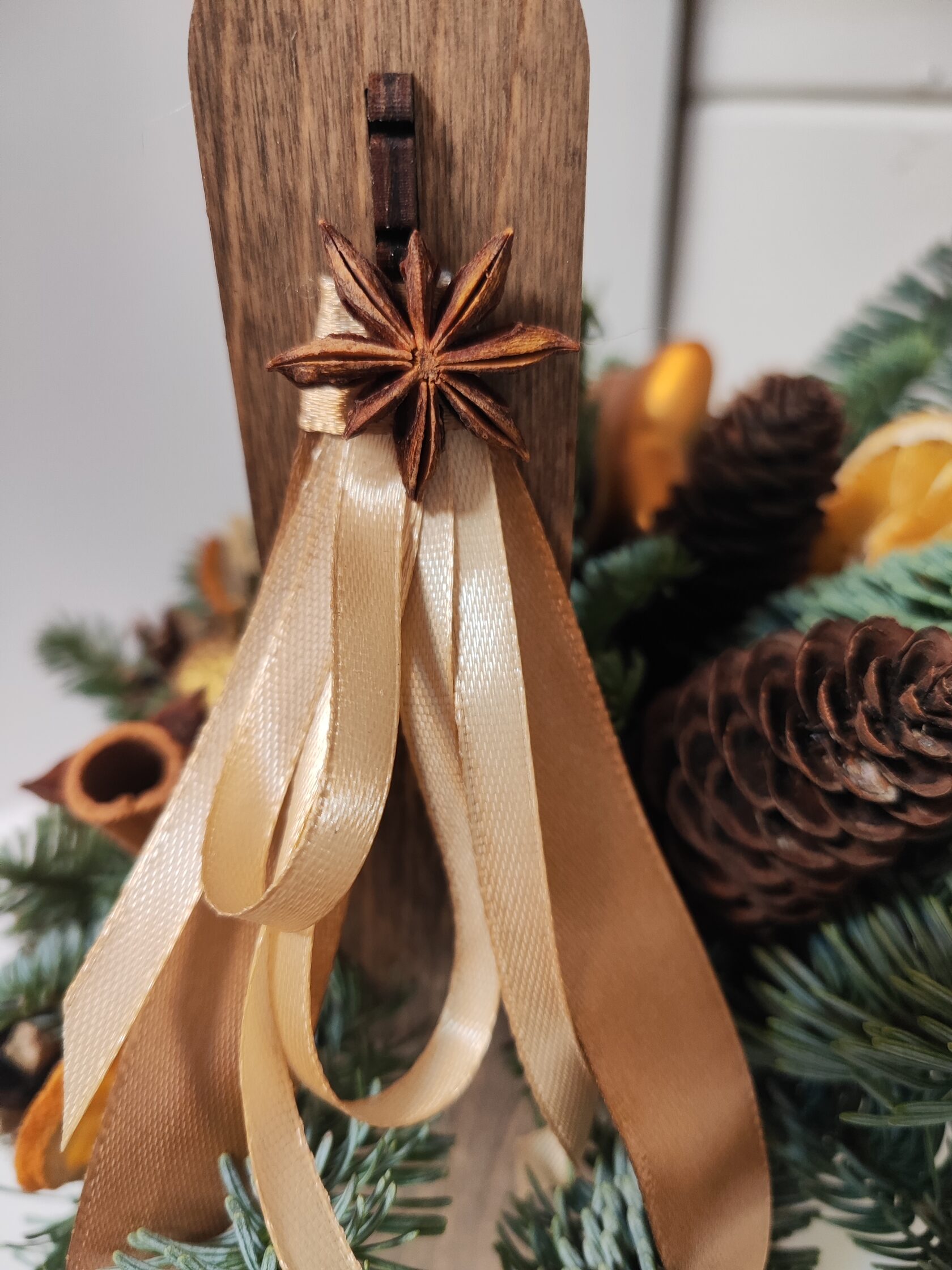 Композиция из веток нобилиса со свечей