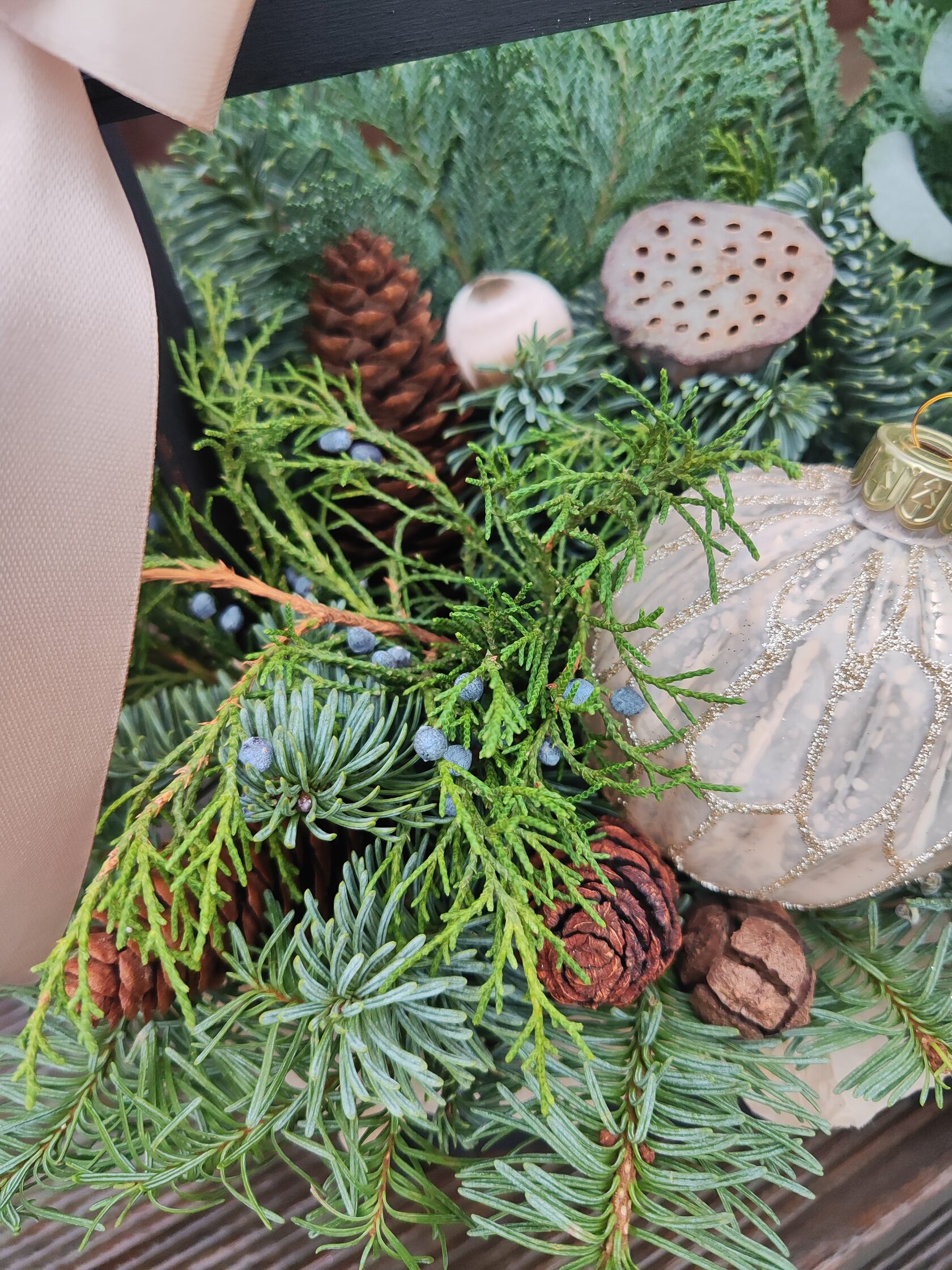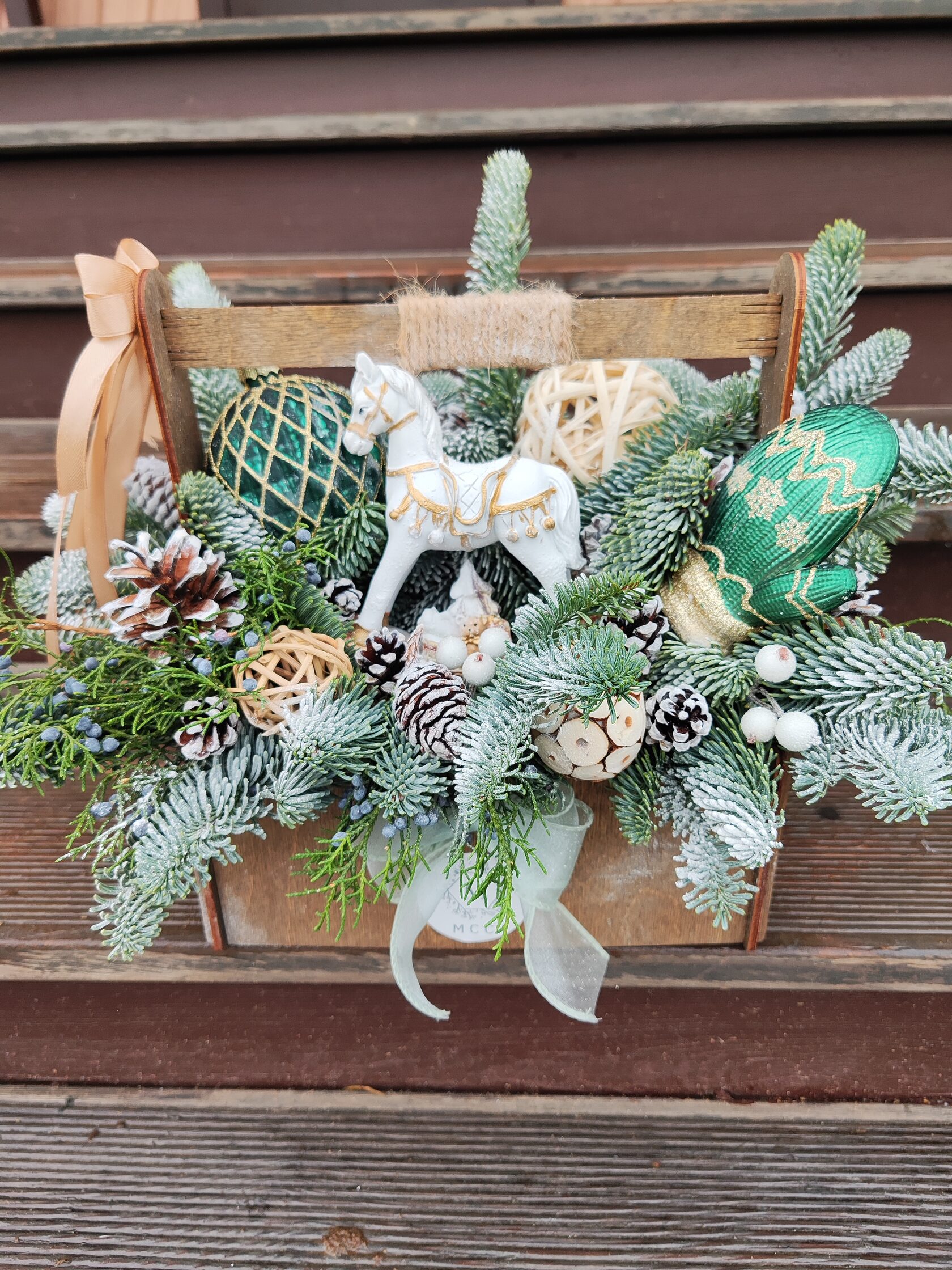 Композиция из веток туи в деревянном ящике 60*40,высота 30